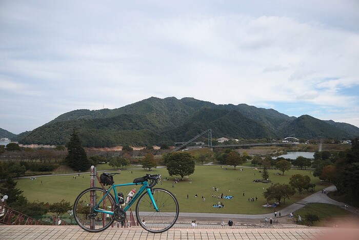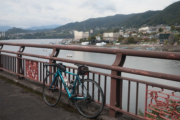 いつもの虹の大橋とパシャリ。今日は空気がよく澄んでて、はっきりくっきり。