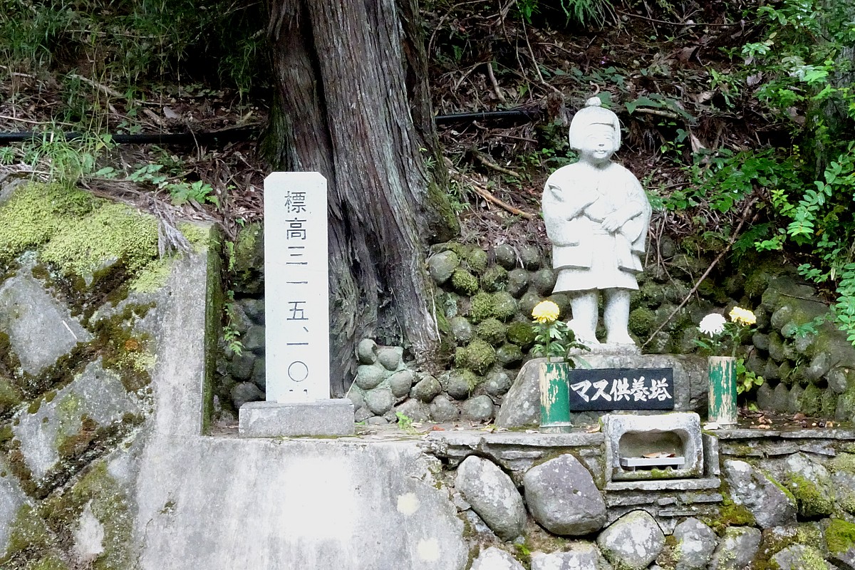 右の女の子像、「マス供養塔」とある。