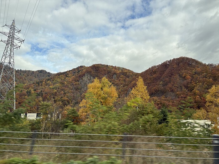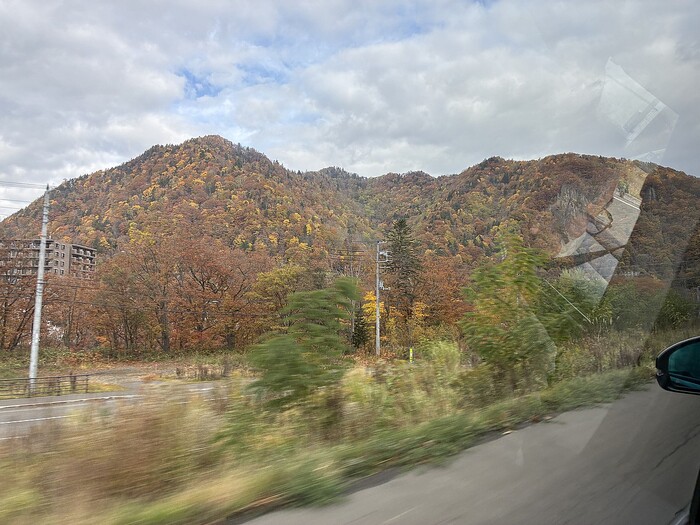 T坂の車から、遅ればせながら定山渓の紅葉をパシャリ。