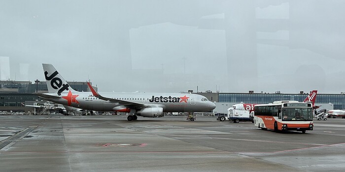 ちなみに、格安のJetstar! 滑走路からバスです。