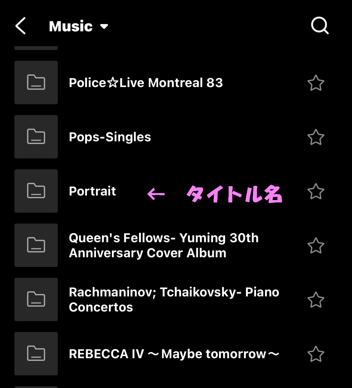 ただ、NoteBurnerさんがつけたフォルダ名のままだと、表示されるのはアルバム名だけ(この場合、Pratrait)