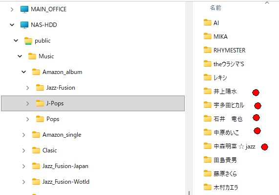 CDのリッピング先は、NAS/Public/Music 内に、大まかなジャンル毎に分けたフォルダに指定してたんだけど、ここに「Amazon_Album」を作り、jazz、pops、j-pops と大まかに分けてDL。
