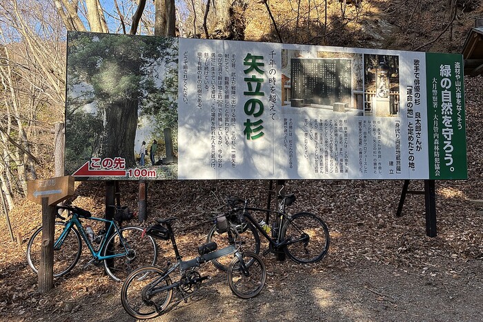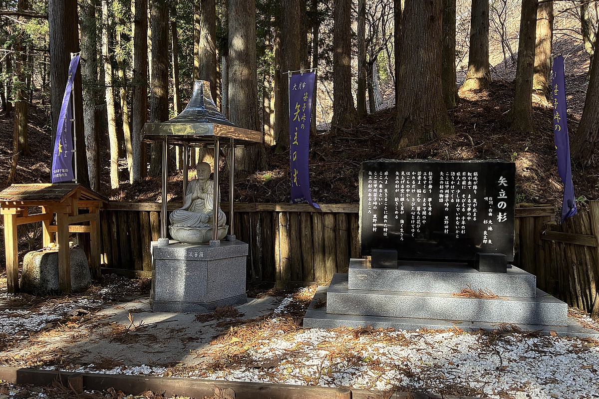 途中で、「矢立の杉」なる看板がいくつか見えて、アレ行こう!アレ行こう!!と、単に休みたいだけ?