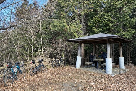 なんとかR20号まで出て、日当たりの良いところでぬくぬく休憩。