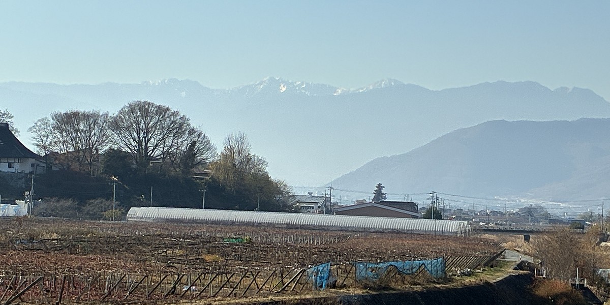 遠くには、北岳?とっても景色良かったよ。だけど、寒いんで、中の席で。