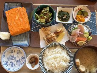 でっかい厚焼き玉子が美味しそうな「あかり定食」(税込み1,580円也)を頂きました。