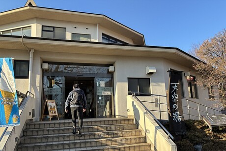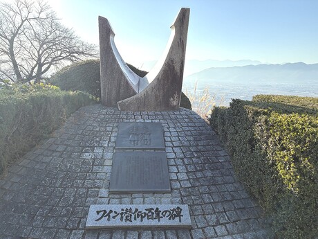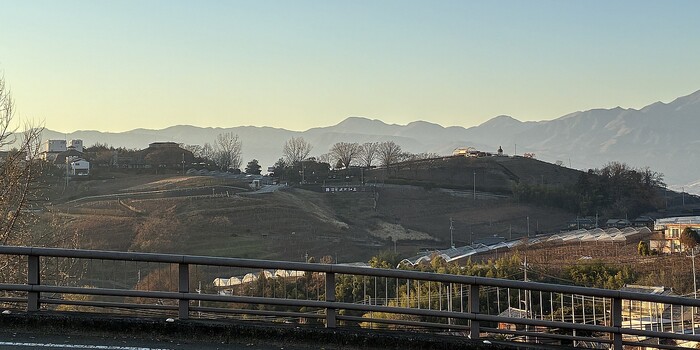 で、目指す温泉は、いつも勝沼ぶどう郷駅から正面に見える、気になってた「ぶどうの丘」にある、「天空の湯」