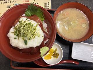 ホントは、ウリの舟盛り定食にしたイトコだけど、アレほどのご馳走は、長い辛いロングライドの後のご褒美感が強いんで、今回は、まぐろとろろ丼(1,350円也)。