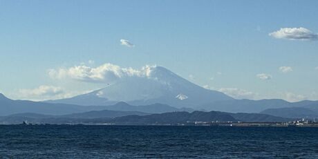 富士山!雲はかかってるけど....ちょっと霞んでるってか、あの雲のおかげで陰ってる?