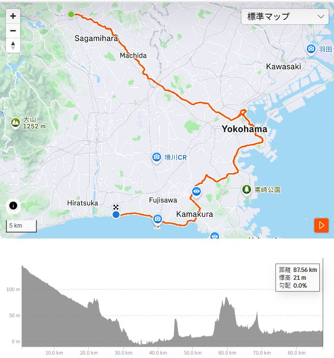 90kmにも及ばなかったものの、前回の江ノ島往復時の90km時点よりはずっと楽でした。