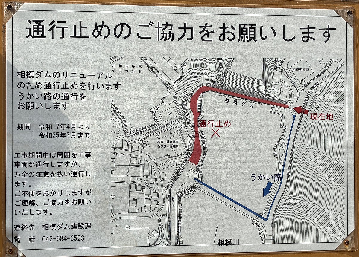 正午過ぎ、相変わらず、相模ダム堤体上は通行止め。