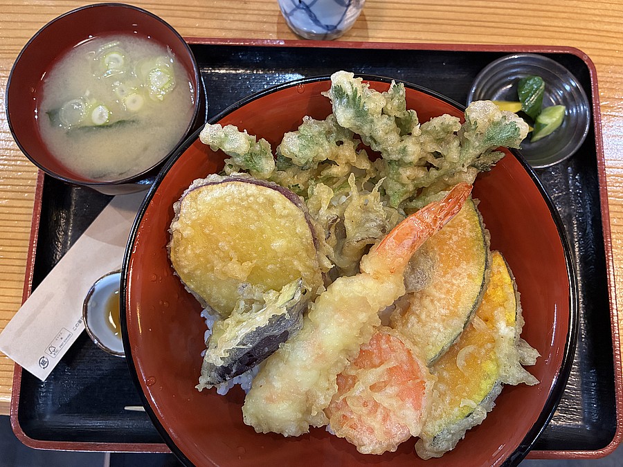 カツ丼(1.100円)と迷ったけど、カツ丼はいつでも食べれるし的に、天丼(1,400円)注文。