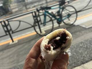 お目当ての豆大福売り切れだったんで、安いつぶあんのを。