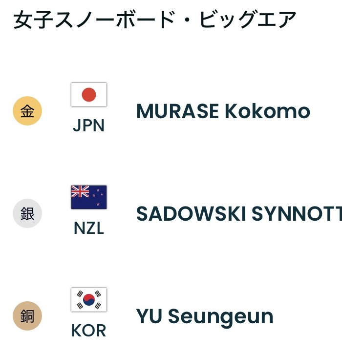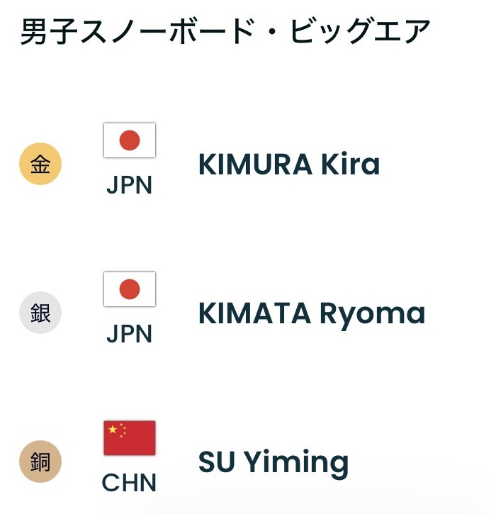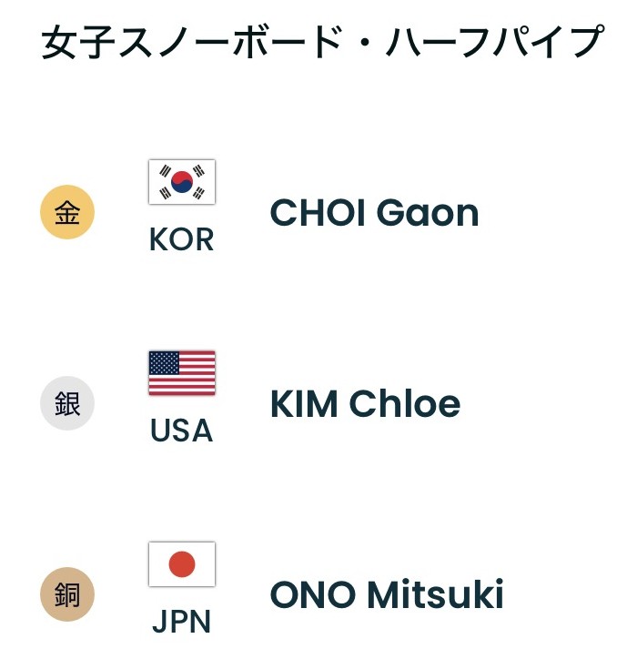 今大会メダル第1号となった、女子ハーフパイプで丸山希選手の直後、今大会金メダルとなった、木村葵来!