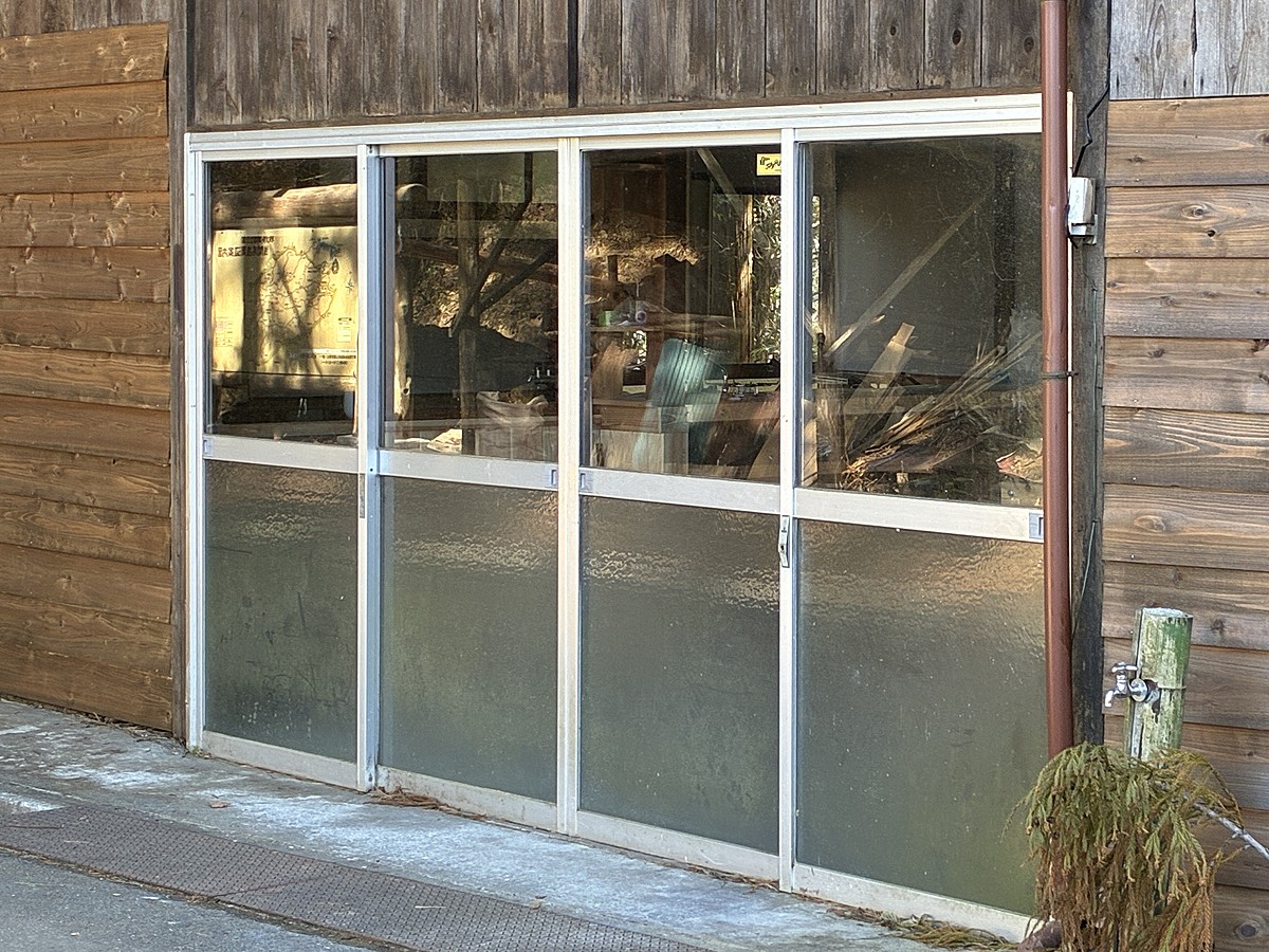 峠の“廃墟”?状態だった小屋も、なにやらシャッター付いたり、小綺麗になってたんで、中を覗いてみたら、キッチンとテーブル設置工事中。