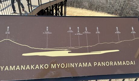 こんな案内板もあって、これ見ると、山中湖の向こうに見えるは北岳!