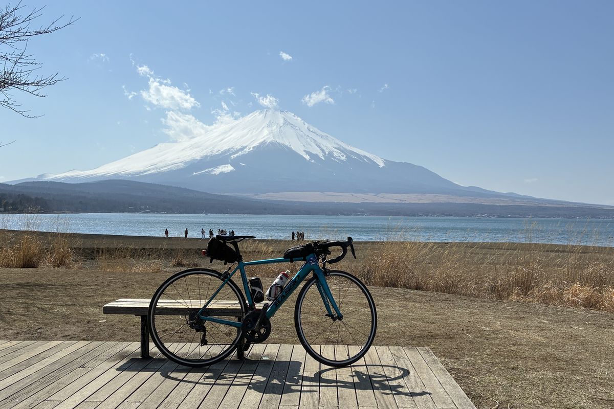 富士みちでの帰り道は、向かい風で進まず、横風でフラフラ。
